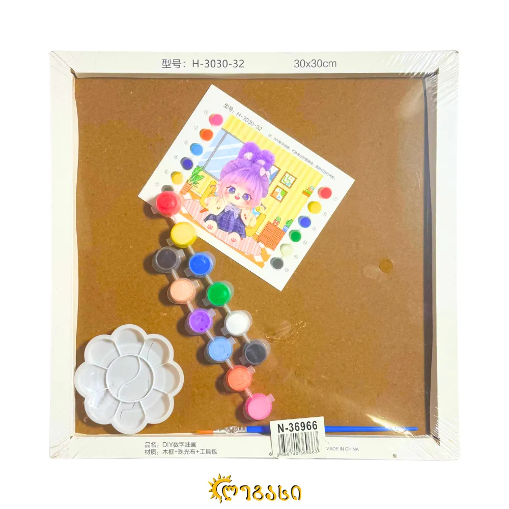 სამხატვრო (გასაფერადებელი) ტილი 30*30 სმ (ფუნჯით, საღებავებითა და პალიტრით)