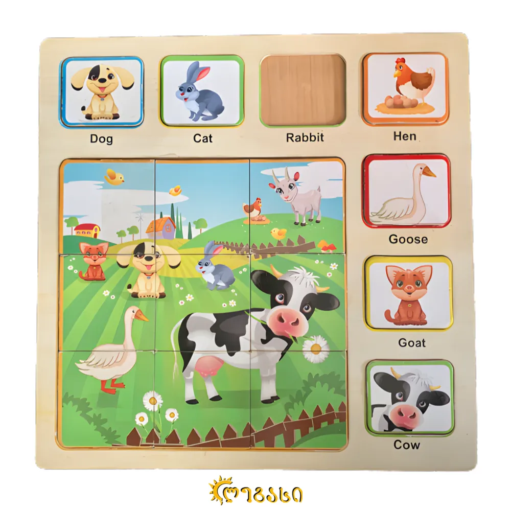 ხის პაზლი-ლექსიკონი ცხოველების თემატიკა
