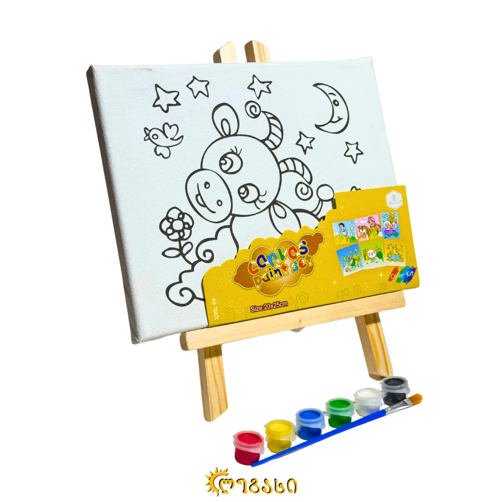 სამხატვრო (გასაფერადებელი) ტილო 20*25 სმ (საღებავებით, ფუნჯითა და მოლბერტით)