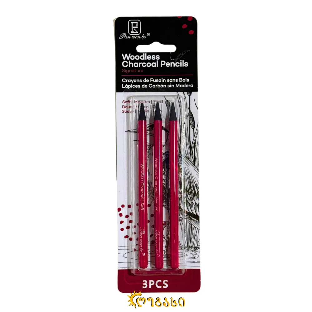 სამხატვრო ფანქრების ნაკრები WOODLESS CHARCOAL PENCILS (3 PCS)