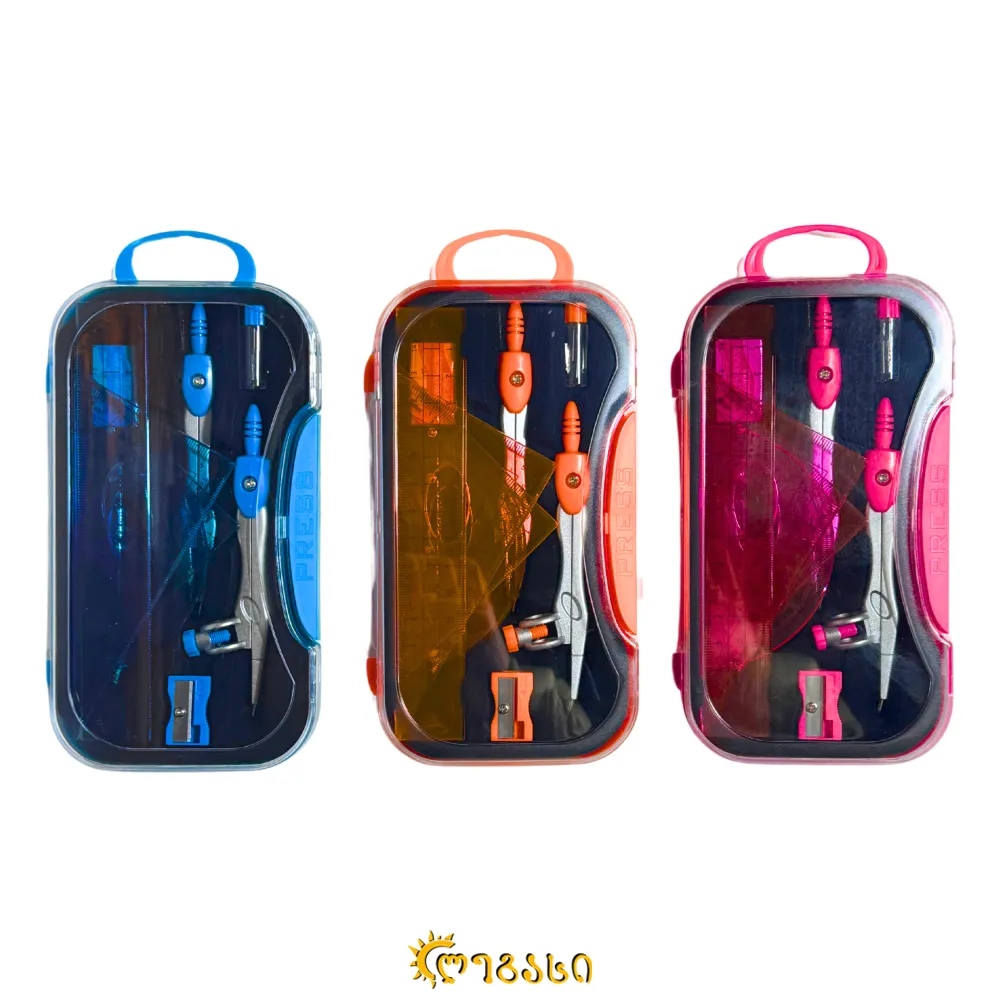 სახაზავი ნაკრები (ფარგალი, ფანქარი, სათლელი, საშლელი, სახაზავი, ფარგლის გული)