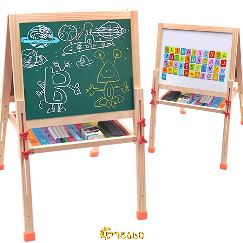 საბავშვო სავარჯიშო დაფა ორმხრივი ხის