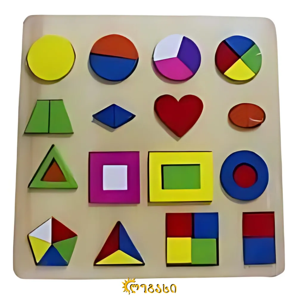 ხის საბავშვო პაზლი ასაწყობი ფიგურები (ნიმუშით)
