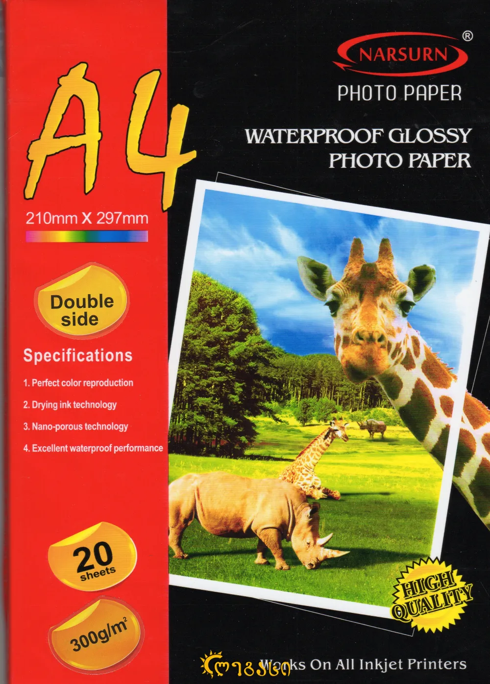 ფოტო ქაღალდი ა-4 ორმხრივი 20-ც. 300-გრ. WATERPROOF GLOSSY PHOTO PAPER 300G/M