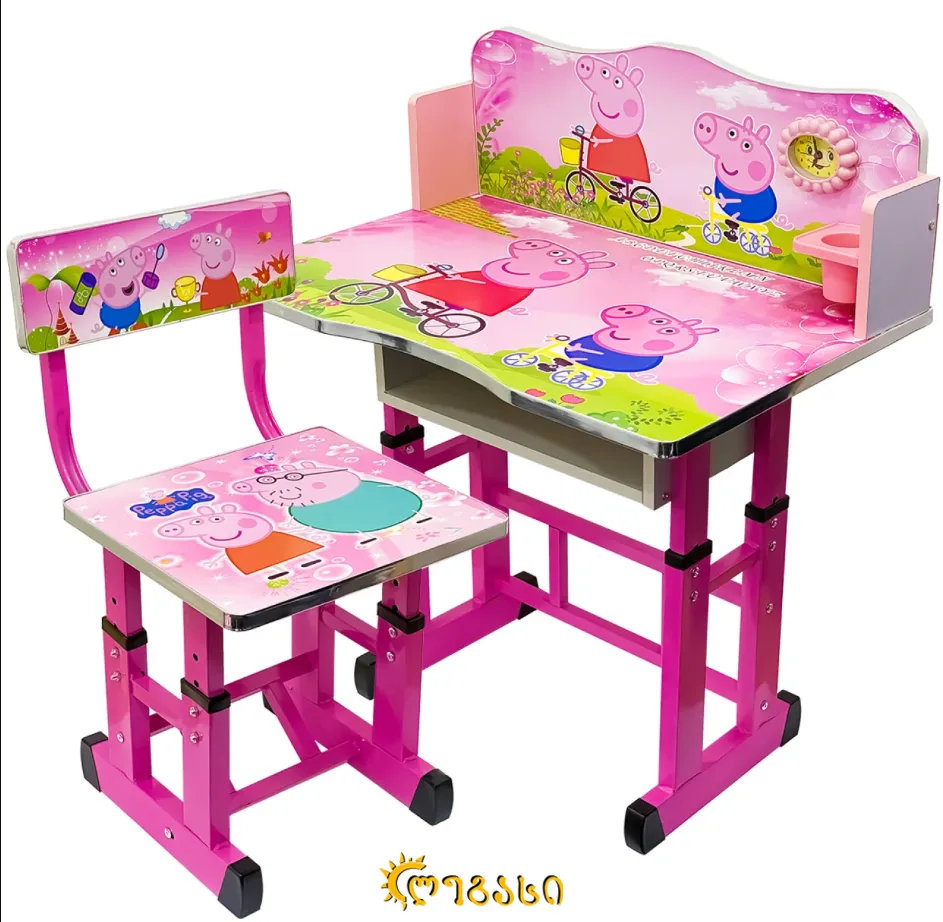 საბავშვო სკამის და მაგიდის ნაკრები ხელმისაწვდომია Peppa Pig-ის პრინტი