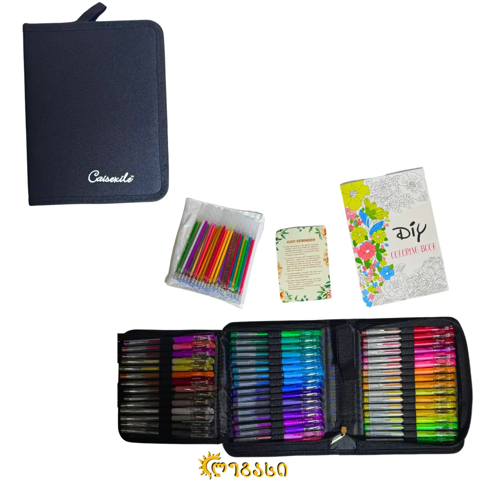 გასაფერადებელი წიგნითა და სათადარიგო მელნებით.
