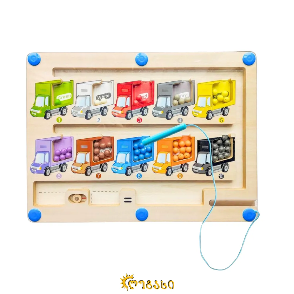ფერებისა და რიცხვების მაგნიტური ლაბირინთი – მანქანის დიზაინით (3–5 წლის ბავშვებისთვის)