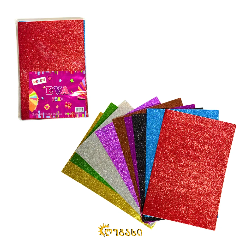 წებოვანი EVA ფერადი ქაღალდების ნაკრები ბრჭყვიალებით (A4)