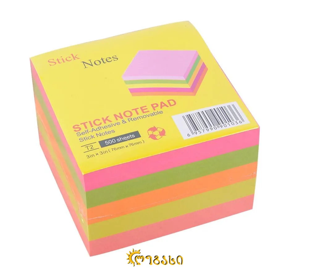 ჩასანიშნი წებოვანი ნეონი 76x76მმ 500ფ T2-500