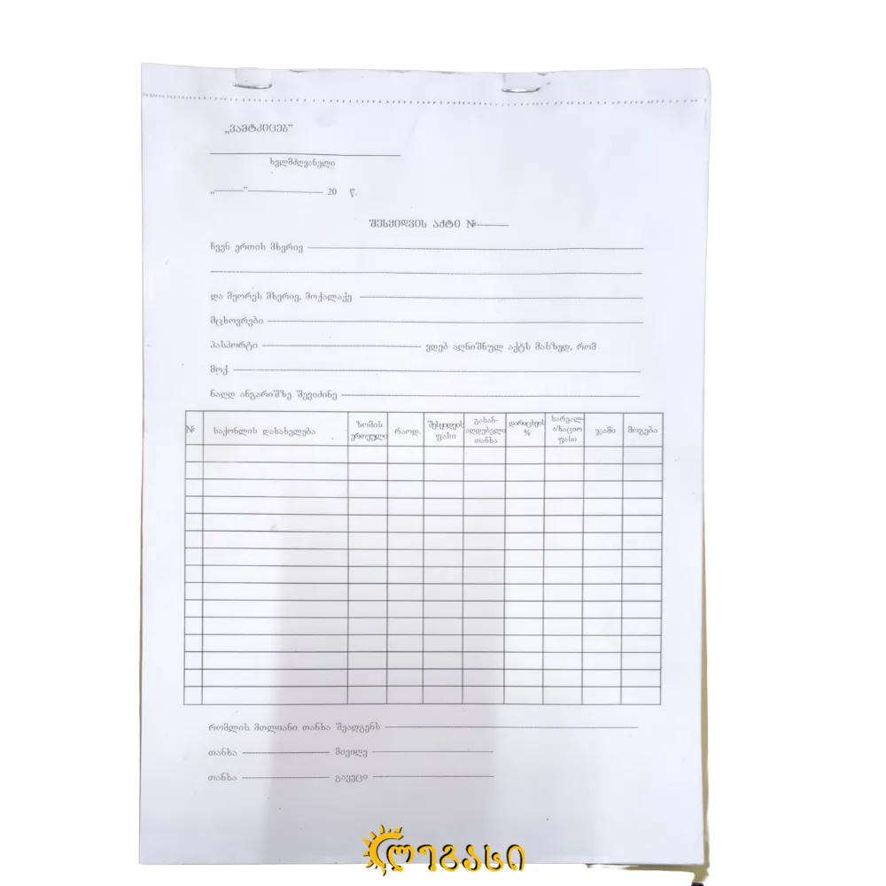 888935 ბარის ანგარიში(70გრ.ქ.)