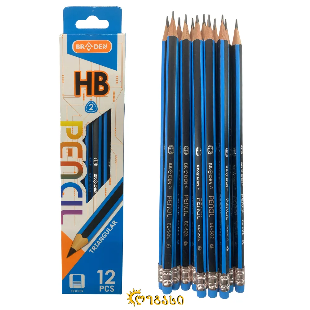 არატოქსიკური, მაღალი ხარისხის გრაფიტი. კომფორტული სამკუთხა ფორმა და საშლელი — იდეალურია ყოველდღიური გამოყენებისთვის.