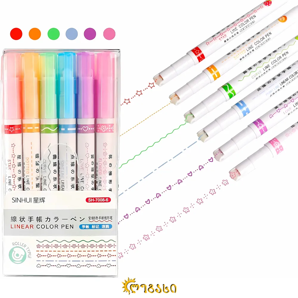ფლომასტერი 6 ფერი (სხვადასხვა ფორმებით)