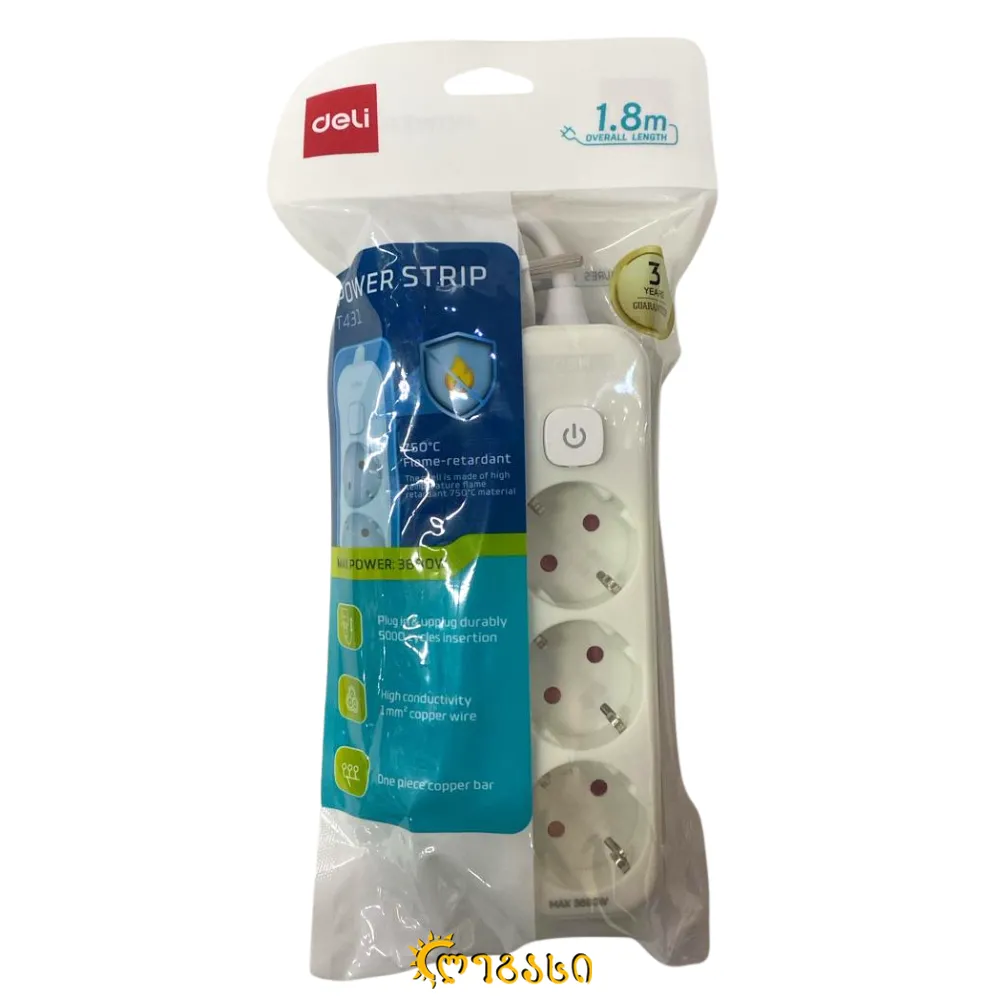 დამაგრძელებელი 1.8m, 3 outlets,T431 , DELI