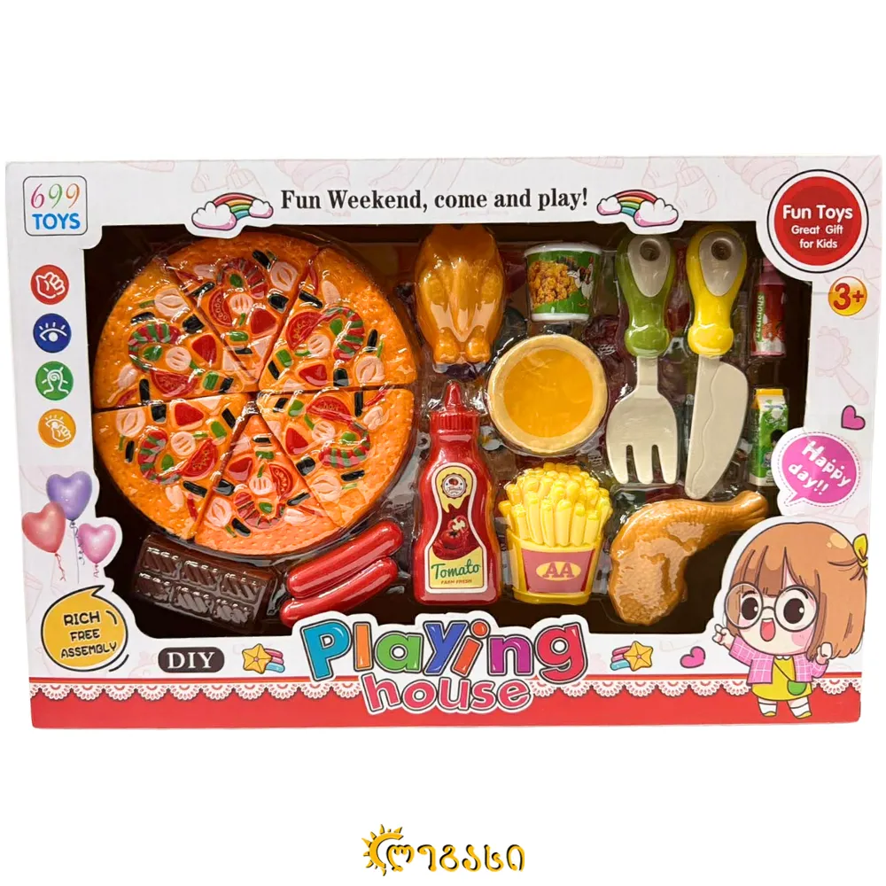 სათამაშო სამზარეულო ჭურჭლის და პროდუქტების ნაკრები 40*27სმ