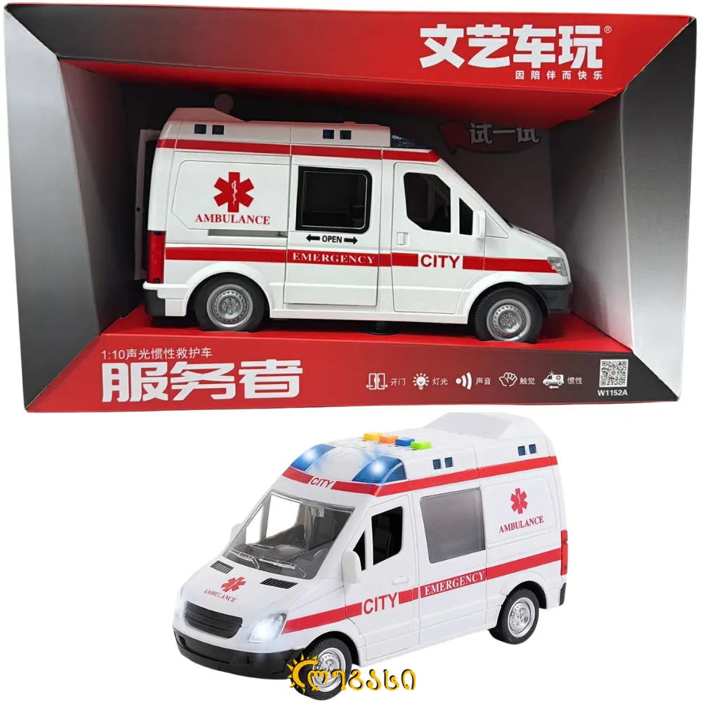 სათამაშო სასწრაფო დახმარების მანქანა 39*23სმ.