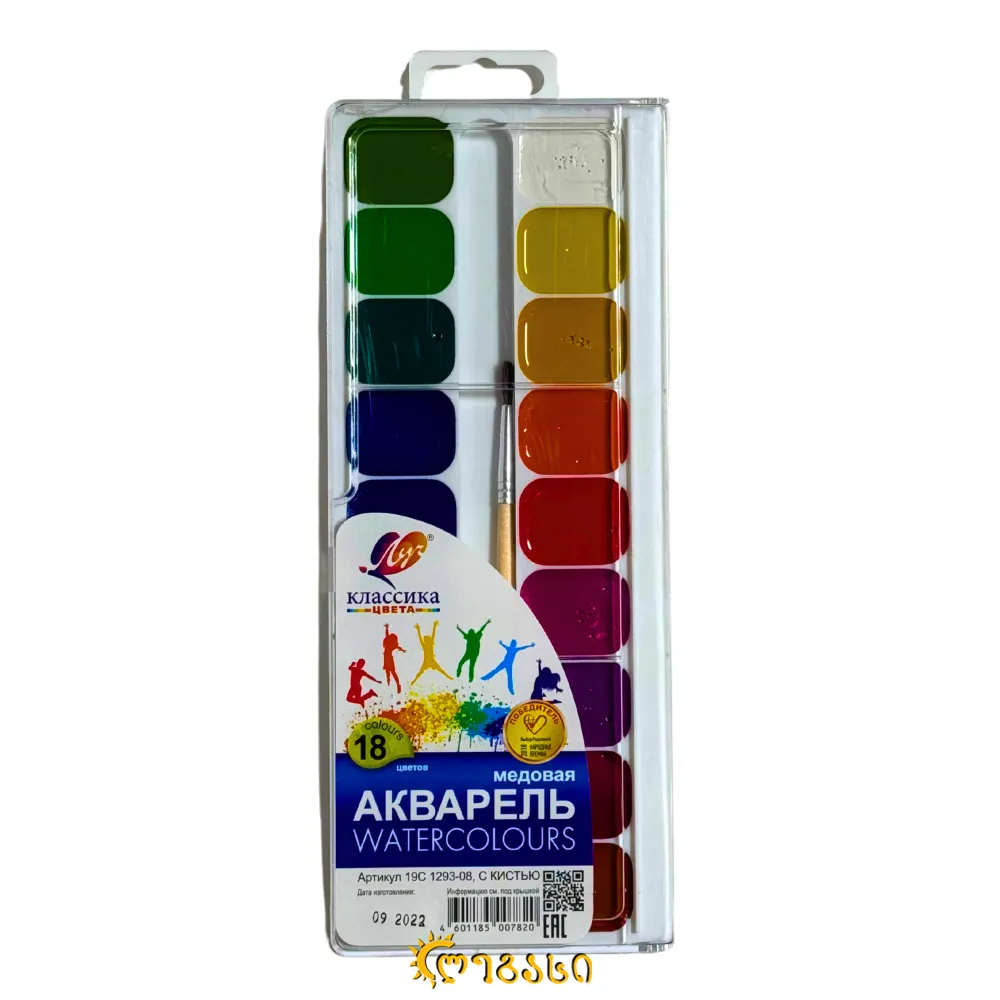 აკვარელი (18 ფერი) ფუნჯით LUCH "Classic”