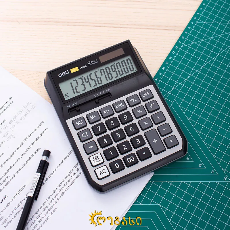 Deli Calculator Metal-12 ნიშნა ვერცხლისფერი ნაცრისფერი