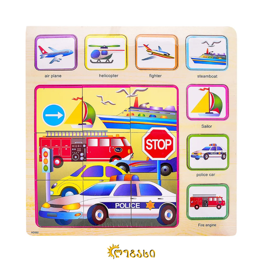 გზის ტრანსპორტის პაზლი - ხის სათამაშო