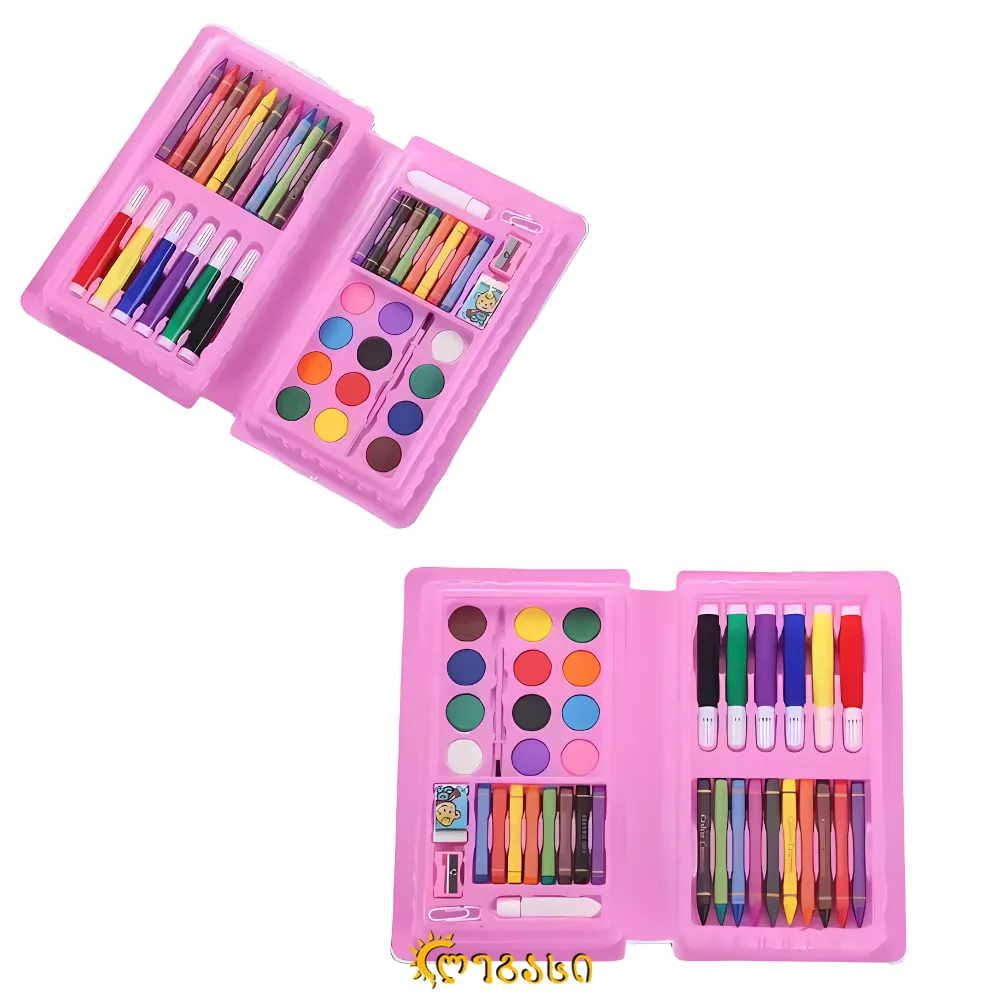 ნაკრებში შედის: ფლომასტერები, პასტელები, საღებავები, წებო, ფუნჯი, სათლელი, საშლელი. ყუთის ზომა: 13.5*23 სმ.