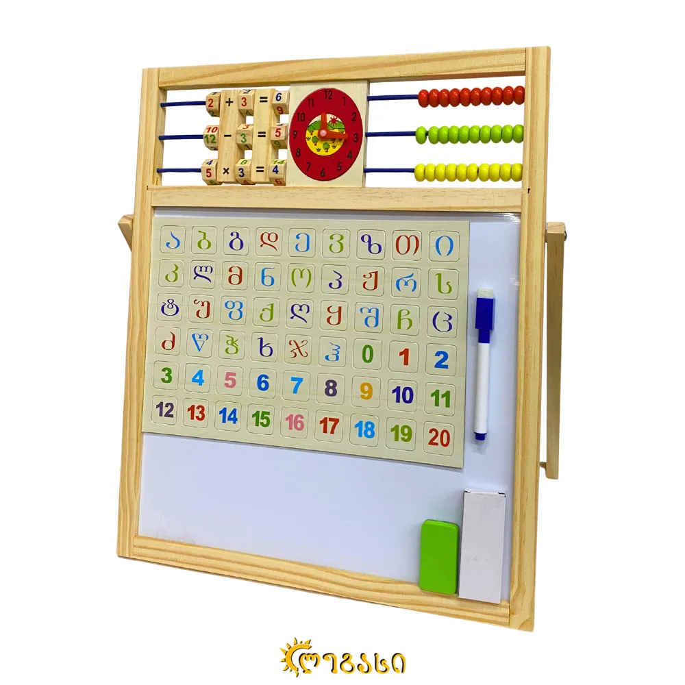 საბავშვო სავარჯიშო დაფა ორმხრივი ხის