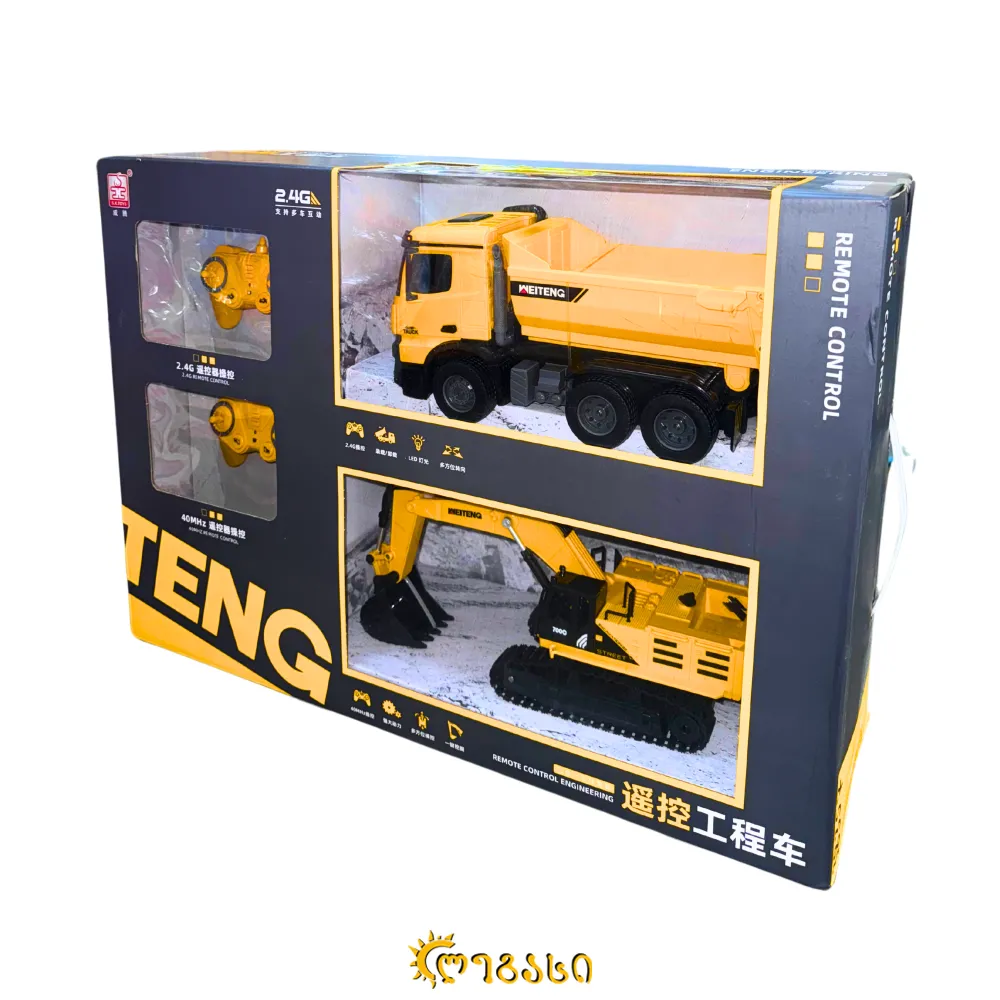 დისტანციურად (პულტით) მართვადი სათამაშო ექსკალატორი და სატვირთო მანქანა