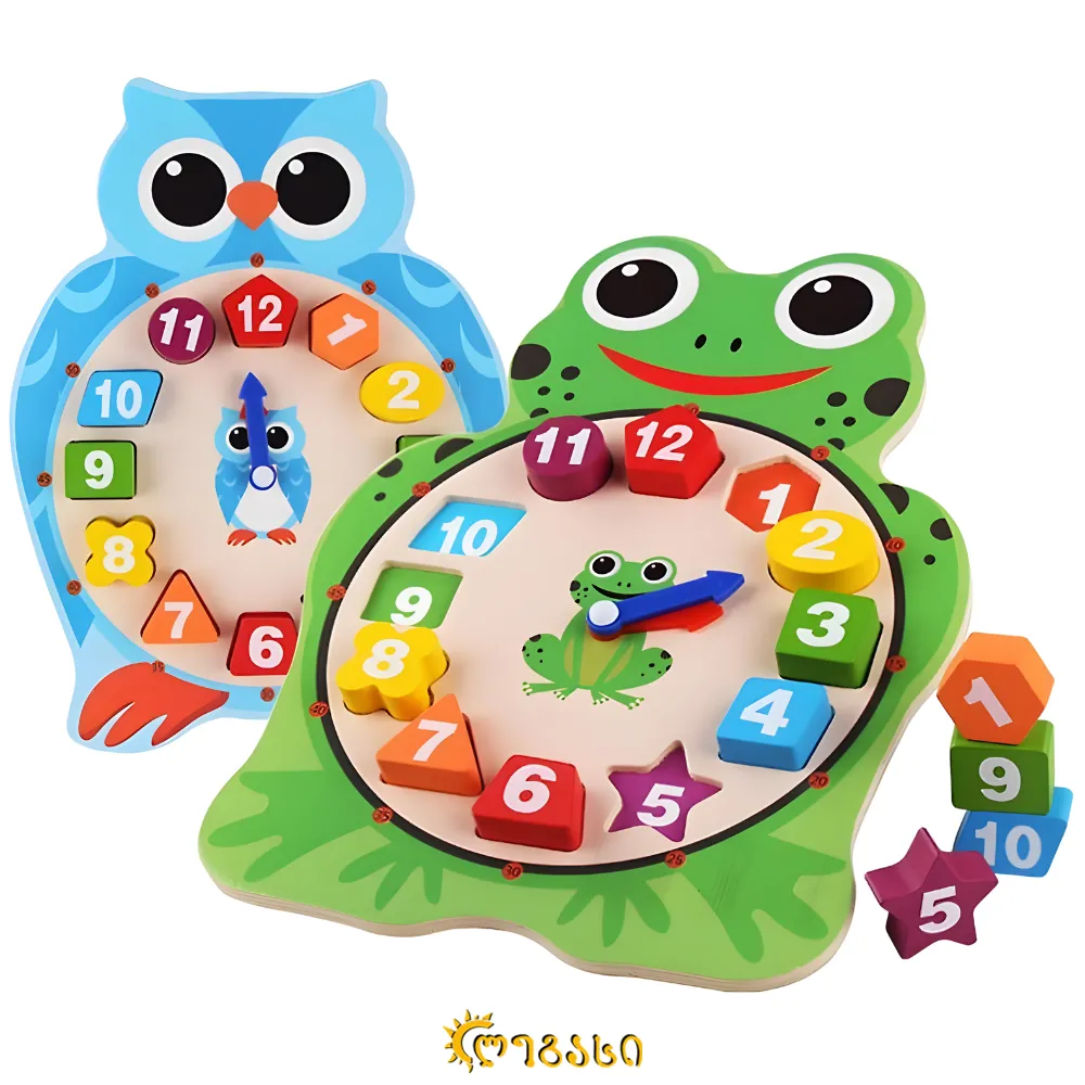 ხის საბავშვო-განმავითარებელი საათი (ბუ/ბაყაყი)