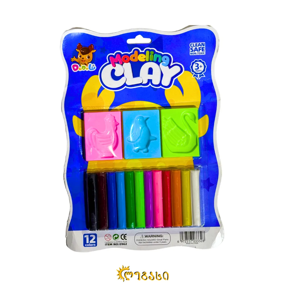 პლასტელინი საძერწი ფორმებით (12 ფერი) MODELING CLAY