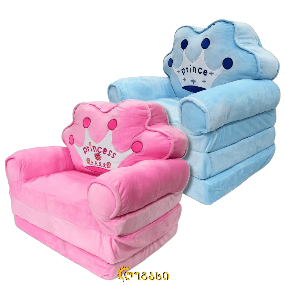 🪑 ბავშვის პლუშის სკამი – პრინცისა და პრინცესას დიზაინით (იკეცება)