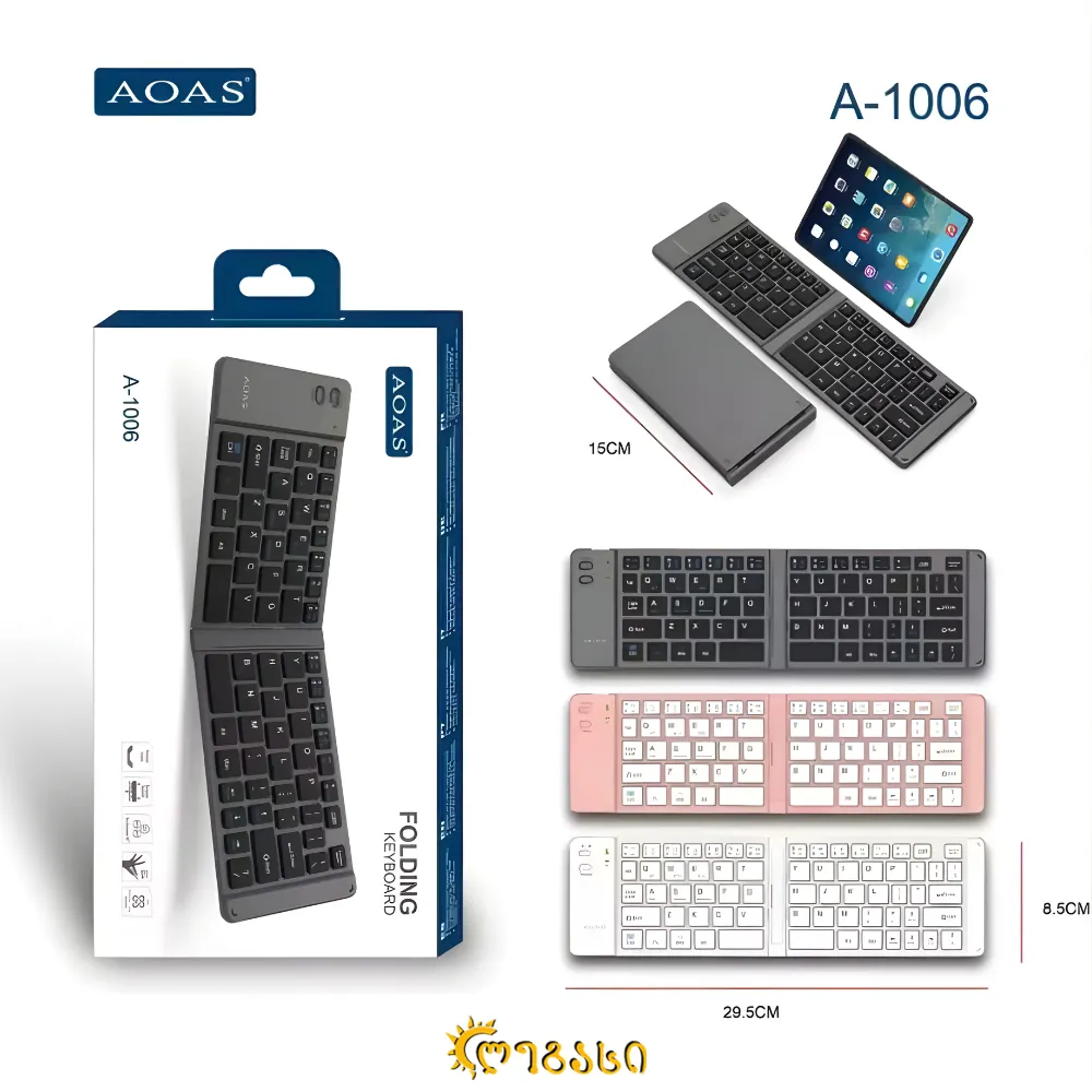 კომპაქტური და ძლიერი, ეს დასაკეცი კლავიატურა უზრუნველყოფს კომფორტს, სტაბილურობასა და მოქნილობას — იდეალურია მუშაობისთვის, სწავლისთვის ან მოგზაურობის დროს. შეკვეთის შემთხვევაში, მოცემული ასორტიმენტიდან მიიღებთ ერთ-ერთს. შეგიძლიათ დაგვიტოვოთ კომენტარი, თქვენთვის სასურველი მოდელის შესახებ და შესაძლებლობის შემთხვევაში მას მოგაწვდით. თუ აღნიშნული პროდუქტი არ იქნება ხელმისაწვდომი, მიიღებთ ერთ-ერთს ასორტიმენტიდან.