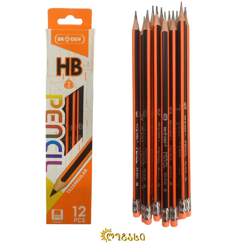 არატოქსიკური, მაღალი ხარისხის გრაფიტი. კომფორტული სამკუთხა ფორმა და საშლელი — იდეალურია ყოველდღიური გამოყენებისთვის.