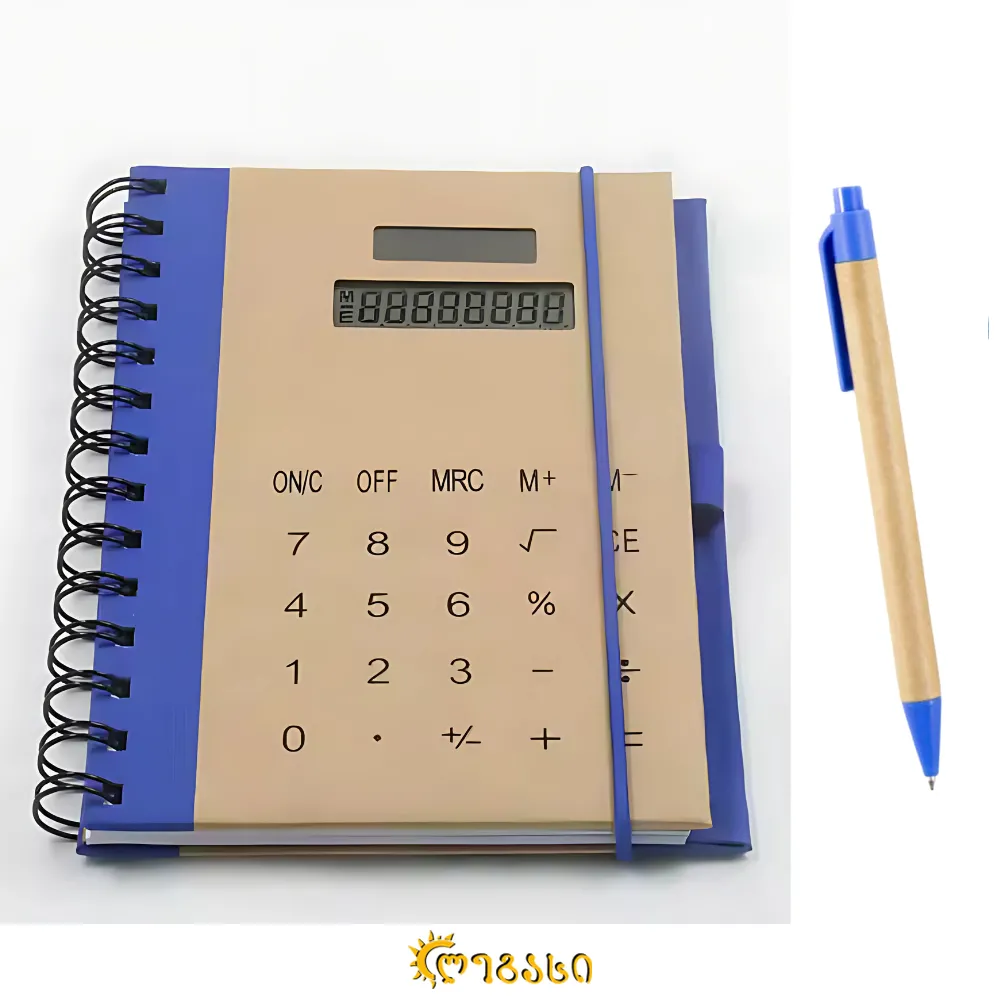 ბლოკნოტი კალკულატორით ბ6-2 კალმით, კორპის ყდით (X-X-100)