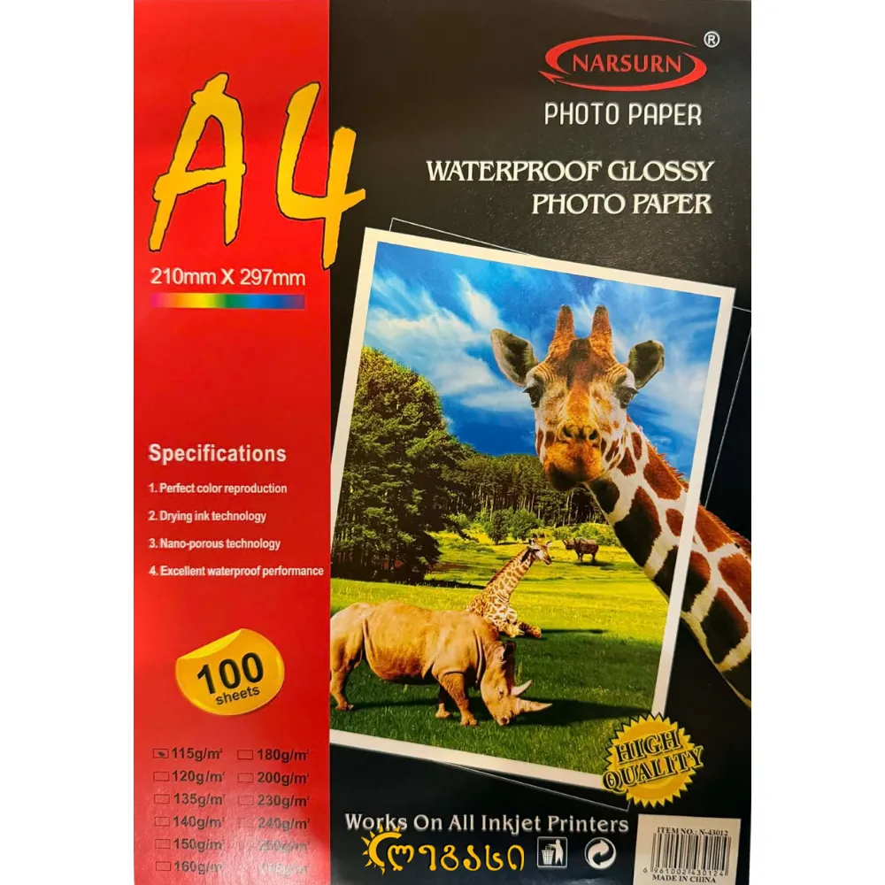 ფოტო ქაღალდი 1-მხრივი 100PC A4 115g
