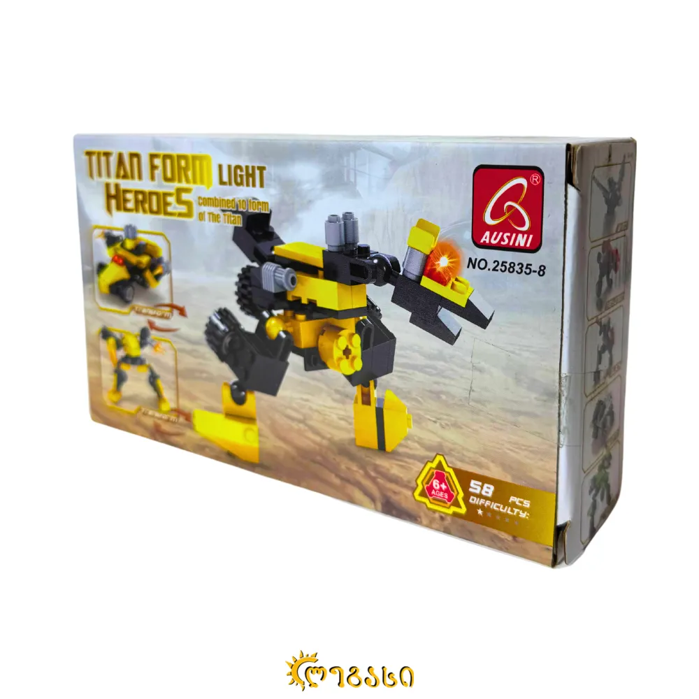 58 ნაწილისგან შემდგარი, ლეგოს ტიპის ასაწყობი სათამაშო.