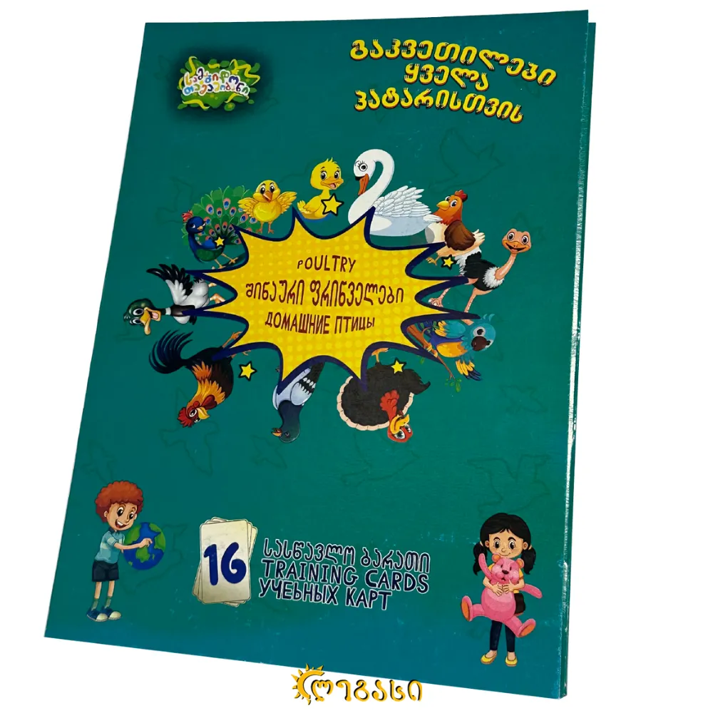 შინაური ფრინველების სასწავლო ბარათები ეხმარება ბავშვებს გაიცნონ ფრინველები, რომლებიც ხშირად გვხვდებიან ფერმებში და შინაურ გარემოში, მაგალითად: ქათმები, იხვები, ინდაურები და სხვა. თითოეულ ბარათზე წარმოდგენილია ფრინველის ილუსტრაცია, რაც სწავლას უფრო სახალისოს და ინტერაქტიულს ხდის.