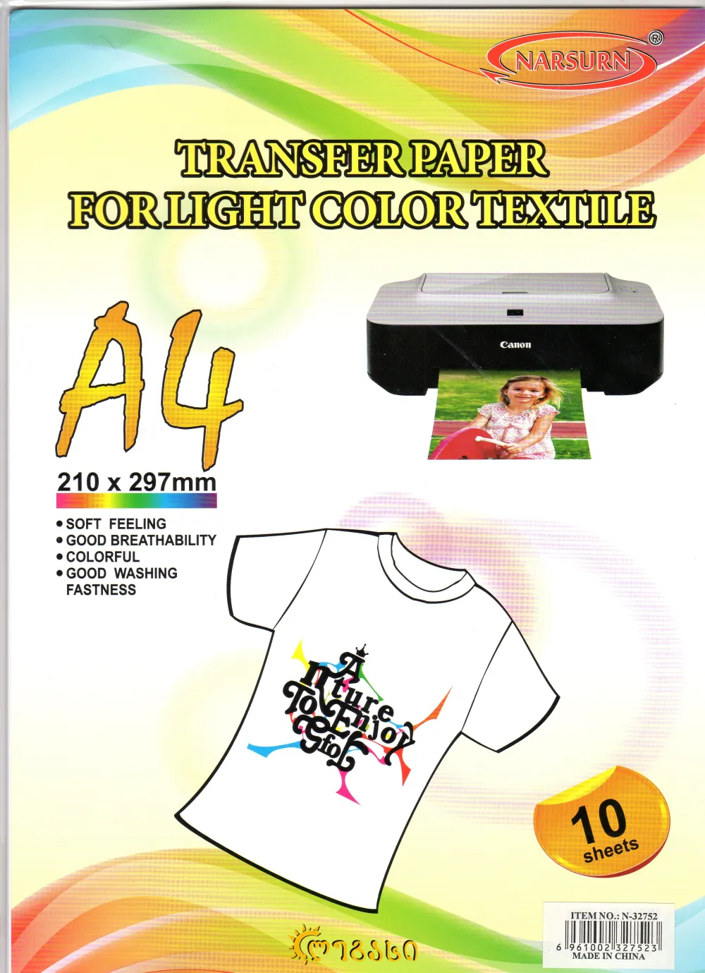 32752 ტრანსფერული ფოტო ქაღალდი A-4 10-ცალიანი TRANSFER PAPER FOR LIGHT COLOR TEXTILE