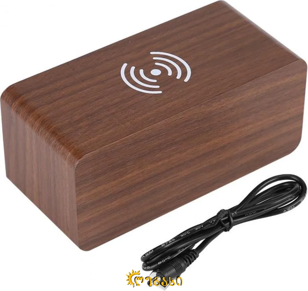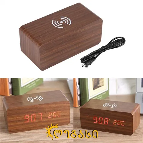 ხის უსადენო საათი მაღვიძარა