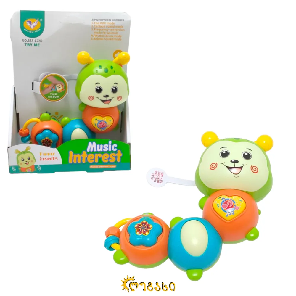 ჭიამაიის ფორმის მუსიკალური სათამაშო არის საგანმანათლებლო და ინტერაქტიული სათამაშო, შექმნილი პატარებისთვის სენსორული განვითარების მხარდაჭერისთვის. სათამაშოს აქვს რამდენიმე ფუნქციური რეჟიმი, მათ შორის MIDI, კარტუნური ხმები, ცხოველების ხმების გადართვა, რითმის დაკვრა და ცხოველების სხვადასხვა ხმები. ინტერაქტიული „გადახრა“ (twist the body) ფუნქცია აძლევს ბავშვს შესაძლებლობას გაააქტიუროს ხმები და მუსიკა, რაც თამაშს კიდევ უფრო მხიარულსა და სასწავლოს ხდის.