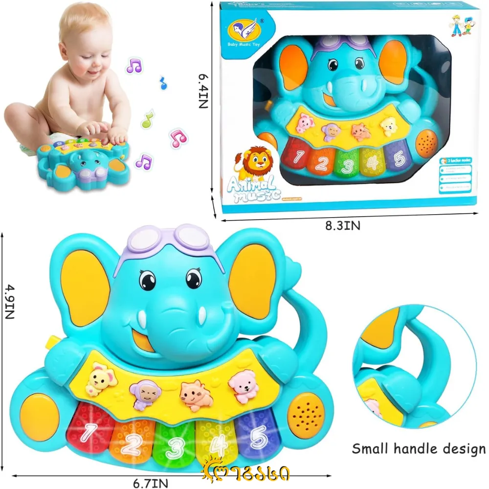 მუსიკალური საბავშვო პიანინო 6–18 თვემდე ბავშვებისთვის არის საყვარელი სპილოს ფორმის სათამაშო, რომელიც აერთიანებს მუსიკას, განათებას და ინტერაქტიულ თამაშს. მას აქვს მხიარული ცხოველების ხმები, ლამაზი მელოდიები და განათებული კლავიშები, რაც პატარას ყურადღებას იზიდავს და დიდ გართობას სთავაზობს. სათამაშო მუშაობს სამ ფუნქციურ რეჟიმში: მუსიკის რეჟიმში აჟღერებს სხვადასხვა მელოდიას ციკლურად, სასწავლო რეჟიმში კლავიშებისა და ცხოველების ღილაკებით ბავშვები სწავლობენ მუსიკალურ ტონებს, ხოლო თამაშის რეჟიმში „Whac-A-Mole“ და განათების თამაშები აუმჯობესებს თვალსა და ხელს შორის კოორდინაციას. სათამაშო ხელს უწყობს სმენით, მხედველობით აღქმასა და წვრილი მოტორული უნარების განვითარებას. დამზადებულია მაღალი ხარისხის ABS პლასტიკიდან, გლუვი კუთხეებით და მოსახერხებელი სახელურით, რაც ბავშვს კომფორტულად შეუძლია დაიჭიროს და გადაიტანოს. ეს სათამაშო იდეალურია 6–18 თვემდე გოგონებისა და ბიჭებისთვის, შობისა ან დაბადების დღის საჩუქრად, რადგან აერთიანებს განათებას, მუსიკას და ინტერაქტიულ თამაშს, რაც ბავშვებს ძალიან უყვართ.
