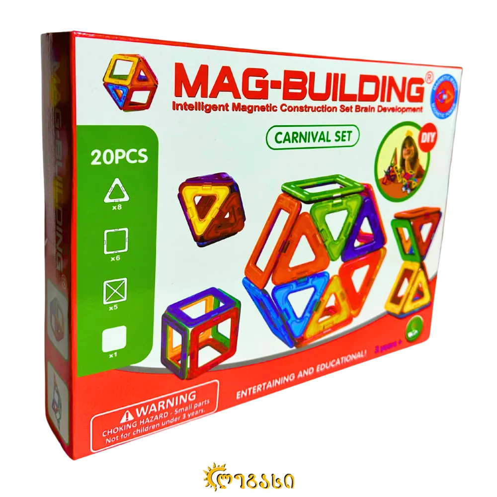 მაგნიტური კონსტრუქტორი ბავშვების ინტელექტუალური განვითარებისთვის. შედგება 20 ნაწილისგან.