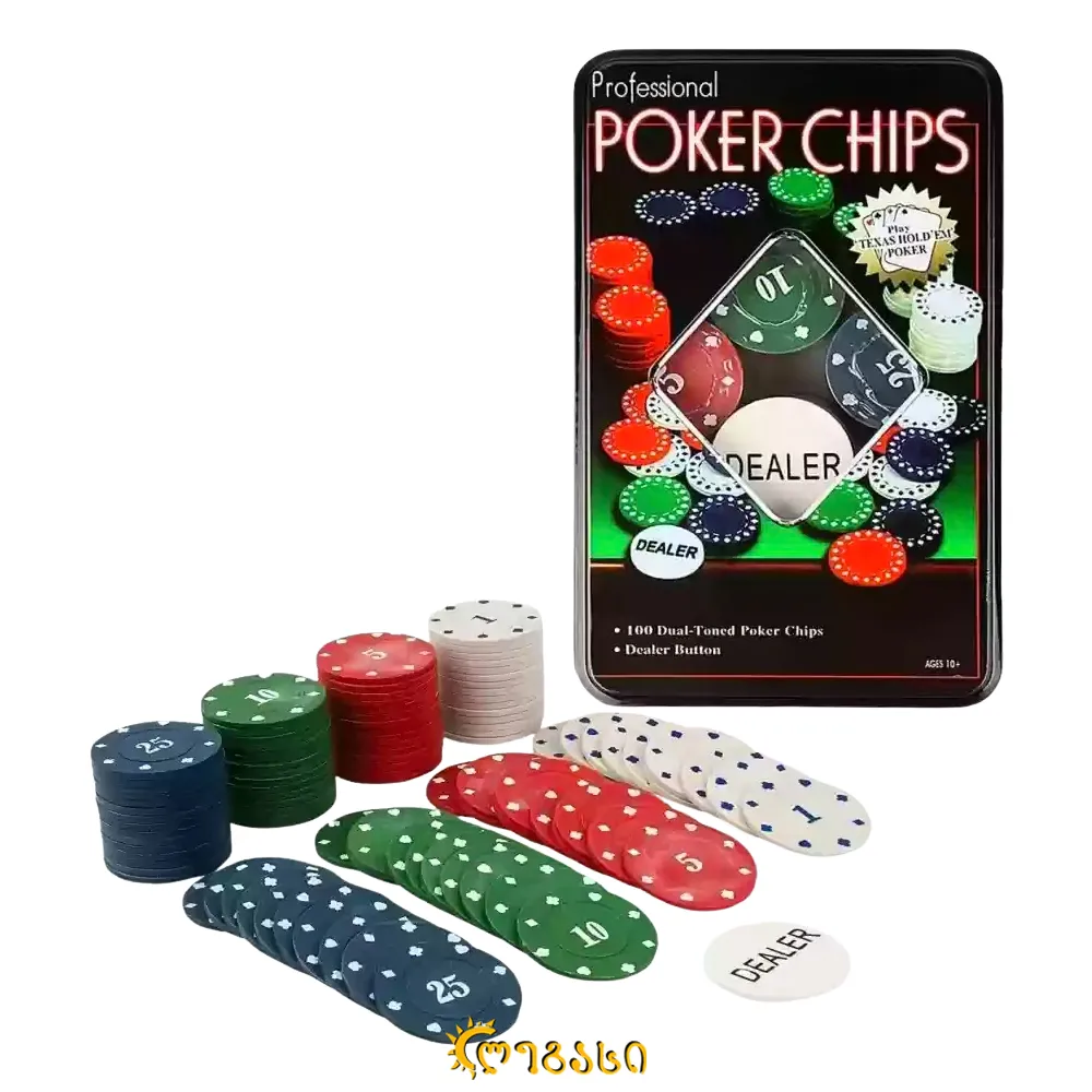 სათამაშო პოკერი 100 ჩიპით და დილერის ღილაკით