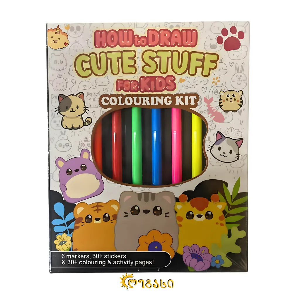 ნაკრებში შედის: 6 მარკერი, 30 + სტიკერი, 30 + გასაფერადებელი ფურცელი და ქეისი.