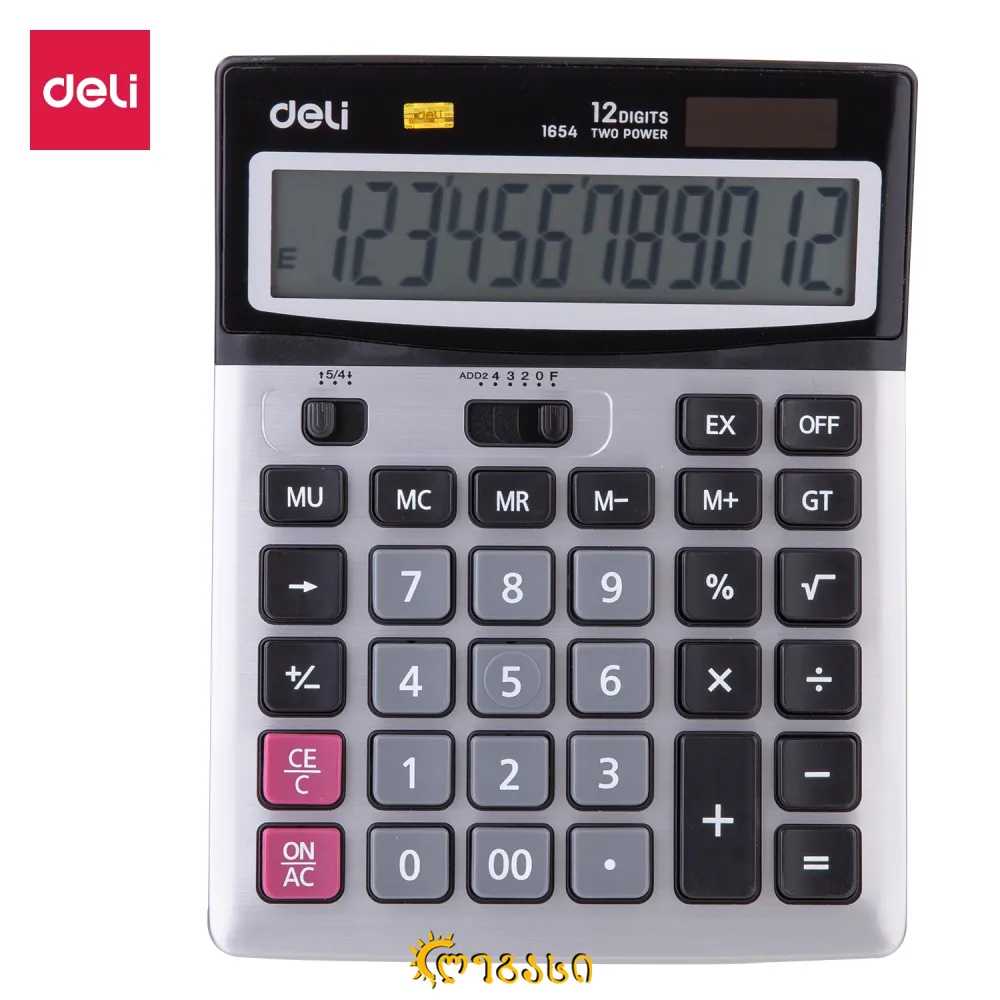 Deli 1654 გამომთვლელი მანქანა 12-ნიშნა ლითონის