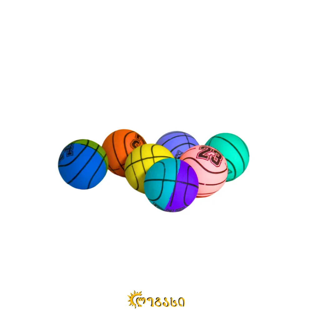 კაუჩუკის ფერადი ბურთები, კალათბურთის ბურთის დიზაინით.