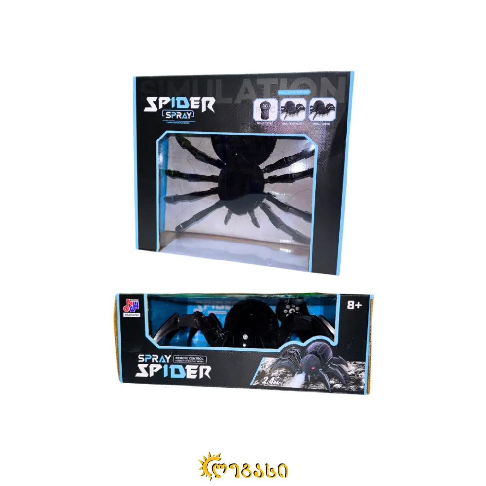 სათამაშო მანათობელი ობობა, რომელიც იმართება პულტით, გადაადგილდება და აფრქვევს სითხეს.