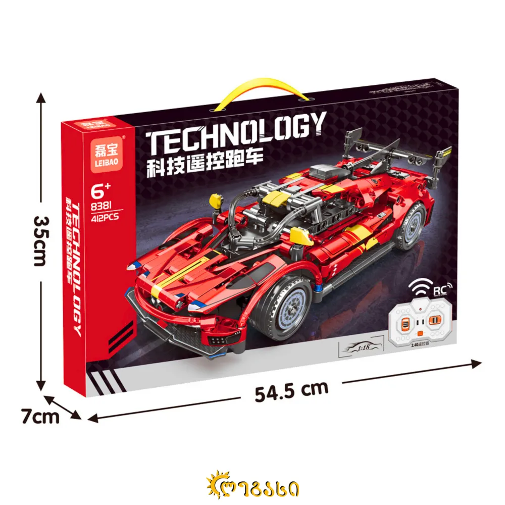 412 ნაწილისგან შემდგარი, ასაწყობი, ლეგოს ტიპის სათამაშო მანქანა, რომელიც აწყობის შემდეგ იმართება პულტით.