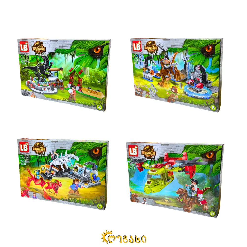დინოზავრების თემატიკის, ლეგოს ტიპის ასაწყობი სათამაშოები, არის ოთხი სახეობის და გაიცემა ცალობით.